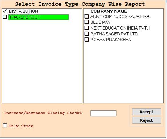 ❖ 7.DISTRIBUTION, TRANSFEROUT -> Please Select The Distribution And Transferout Or Press On F3 All Select Company Name Wise Report Show