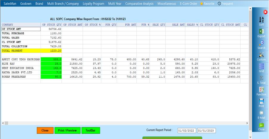 Reports->Comparative Analysis->All SOPC Stock Company Wise