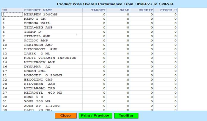 Reports -> Territory/Management Reports -> Management Comparative -> Overall Perf. By Product ->ASM.