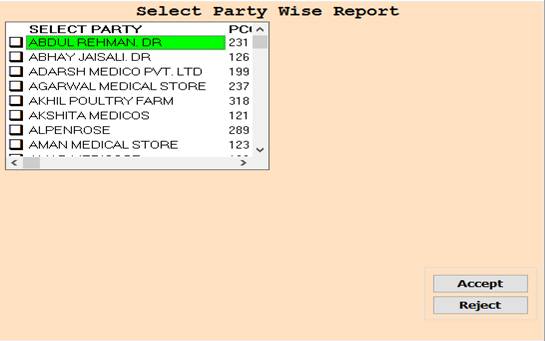 2. In this Window Select Party Name Through Box Selection.
