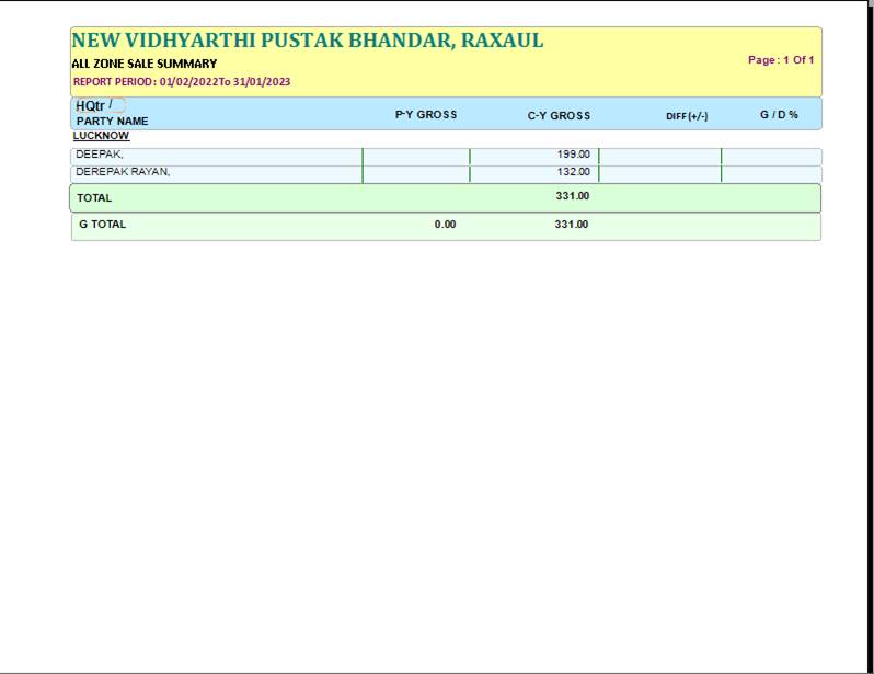 All Zone Sale Summary Multy Year Report will show the record of the salesman according to different zone