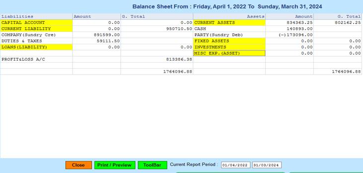 8. Close :- Click on the Close button this Report will be Closed.