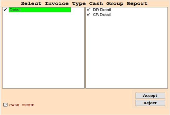 2. In this Window Select Invoice Type Or Cash Group Through Check Box Selection.