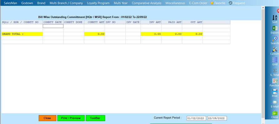 Reports->Miscellaneous->Commitment Report(Data Wise)