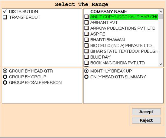 ❖ 4.DISTRIBUTION->Please Select The Distribution Or Press On F3 All Select Company Name Wise Report Show