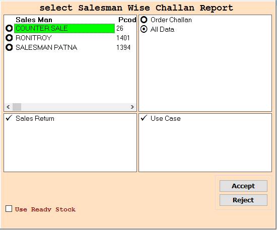 ❖ 3.Sales Man ->Press On F3 All Select Sales Man Order Challan Wise Report Show