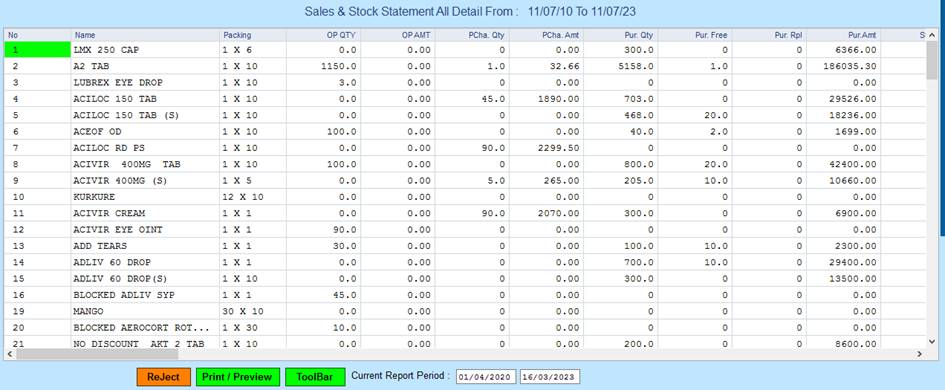 PMS ALL Reports -> Production Section -> Reports -> Sales & Stock Statement -> All -> Detail.