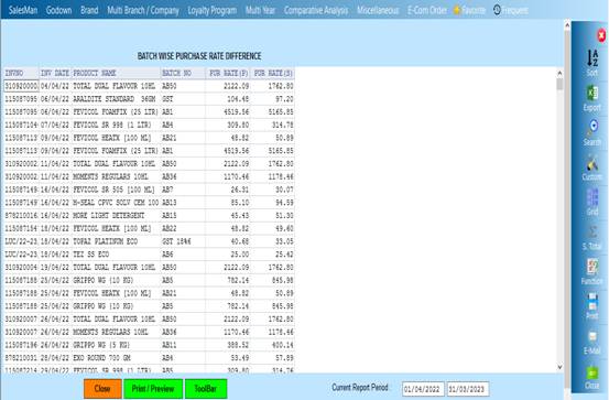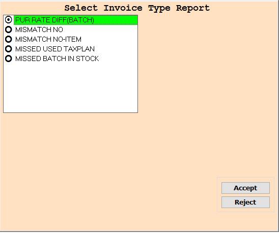 This report will show the record of the product having batch and the purchase rate and if anyone wants to see the report then they have to select the Pur rate diff(Batch),Mismatch number etc then the report will show