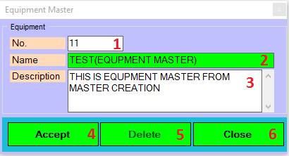 Reports->Production Section->Master Creatio&N->Other Master->Equipment Master