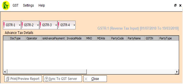 GST>GSTR-1> GSTR (Data Preparation)> Advance Tax Receipt
