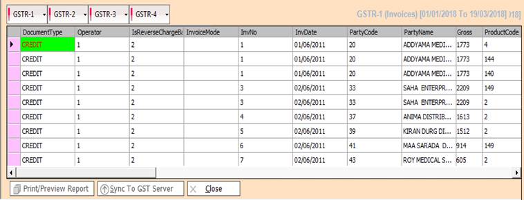 GST>GSTR-1> GSTR (Data Preparation)> Credit/Debit Note