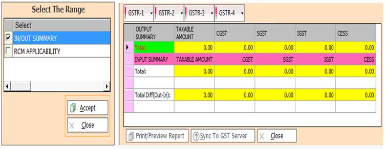 This will help you to see tax amount to be paid in the month (GST summary report), based on the selection (IN/Out/Reverse Charge).