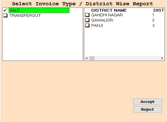 2. In this Window Select Invoice Type/District Name According To Your Need for Show Report, Select Any One or Multiple