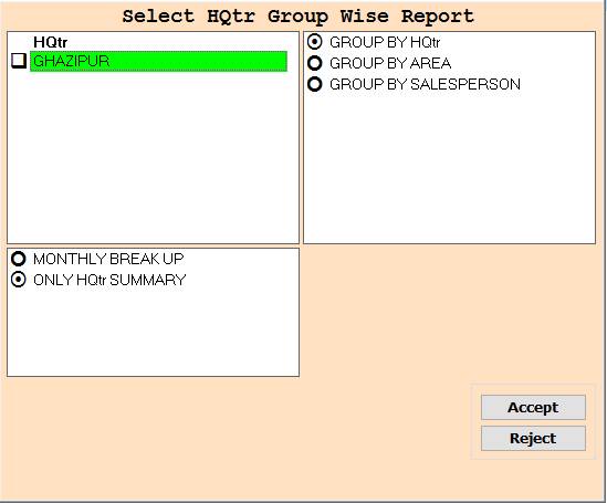❖ 6.HQtr ->Please Select The HQtr Or Group By Area Wise Report Show