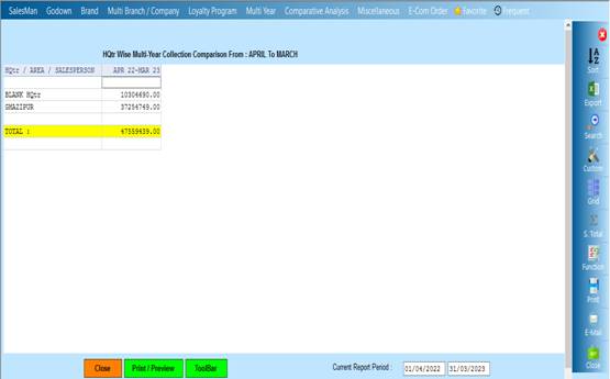 Reports->Multy Year->HQtr Party Collection Comparision