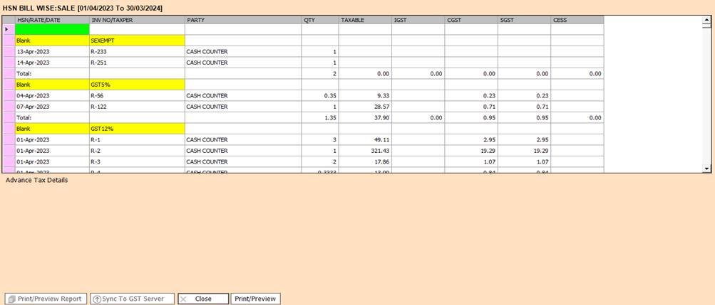 8. HSN Bill Wise : Sale.