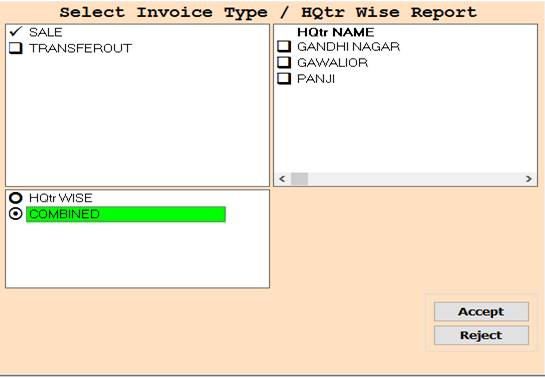2. In this Window Select Invoice Type Or HQtr Name , HqtrW/Combined According To Your Need for Show Report, Through Box