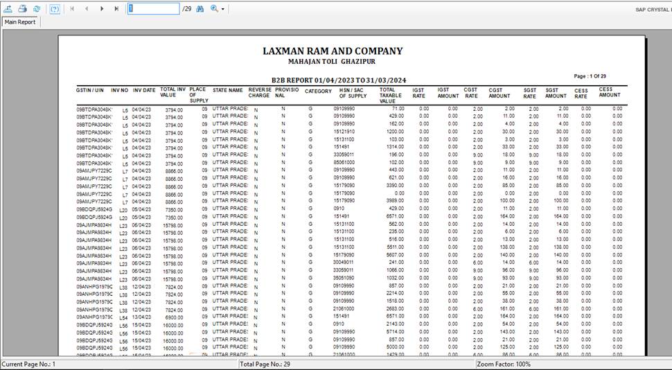PMS All Reports -> GST Reports -> GST Departmental Form -> GSTR-Report -> Crystal Report -> Invoice Type Wise Report.