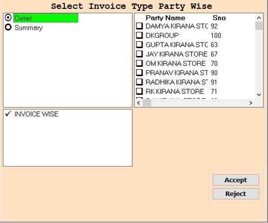 ❖ 6.INVOICE WISE-> Please Select The Invoice Wise Or Party Name Wise Report Show