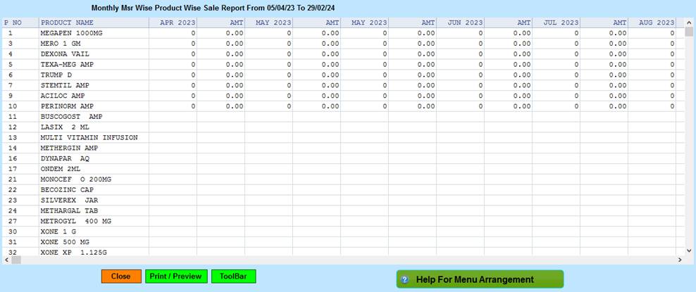 5. Close :- Click on the Close button this Report will be Closed.