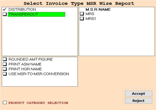 2. In this Window Select Invoice Type, MSR/Group Name And Report Type According To Your Need for Show Report, Select Any One or Multiple
