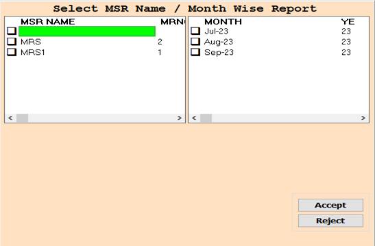 2. In this Window Select MSR Name/Month According To Your Need for Show Report, Select Any One or Multiple