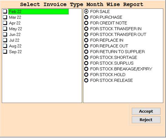 ❖ 27.MONTH -> Press On F3 All Select Month Or Select For Stock Release Wise Report Show