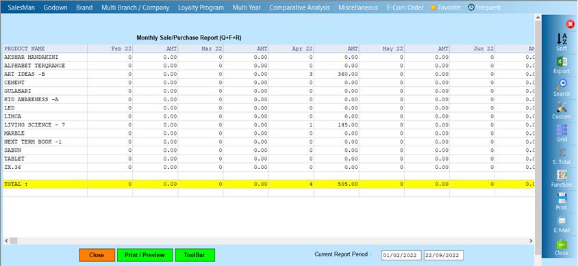 Reports->Comparative Analysis->Monthly Product Wise [Sale/Purchase]