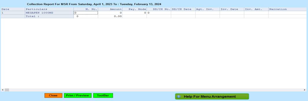 5. Close :- Click on the Close button this Report will be Closed.