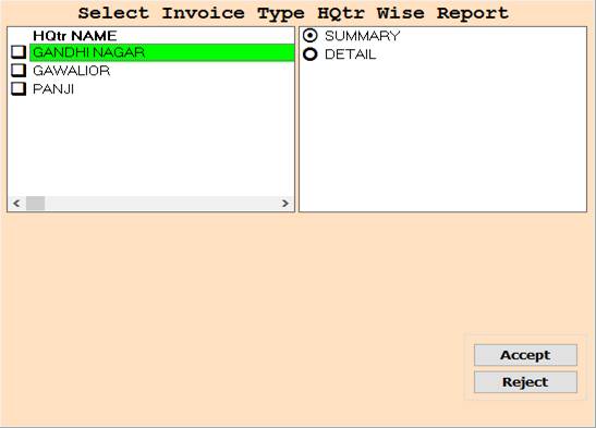 2. In this Window Select HQtr Name And Summary/Detail Through Box Selection.