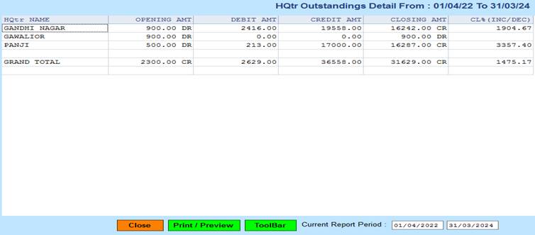 5. Close :- Click on the Close button this Report will be Closed.