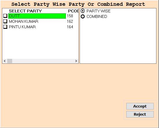 7. In this Window Select Party Name or PartyWise/Combined According To Your Need for Show Report,