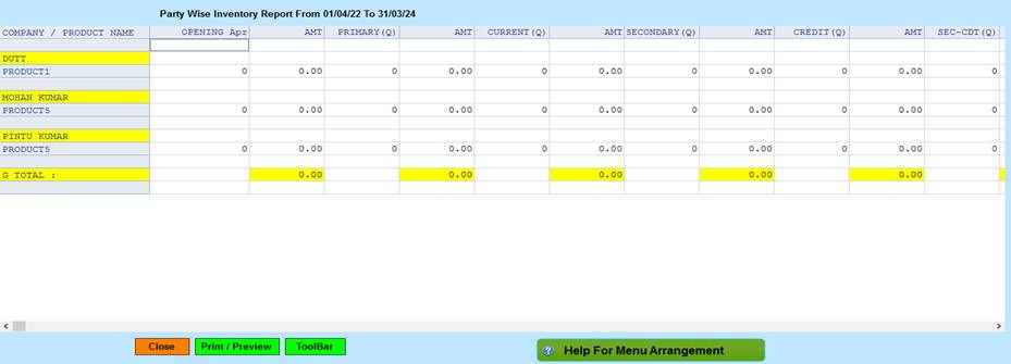 Reports->Territory/Management Reports -> Territory Analysis-> Overall Performance -> Party Wise[Primary/Secondary/Credit]