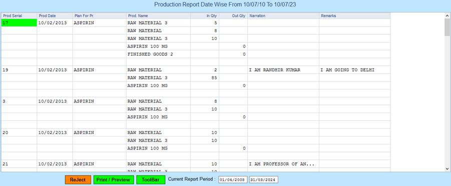 PMS ALL Reports -> Production Section -> Reports -> Production -> Plan Product Wise.