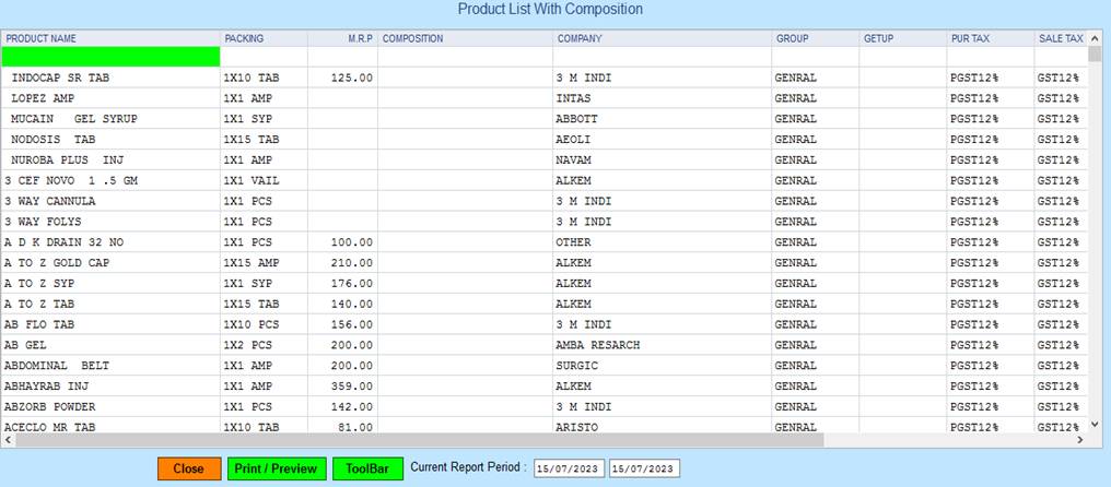 4. Close :- Click on the Close button this Report will be Closed.
