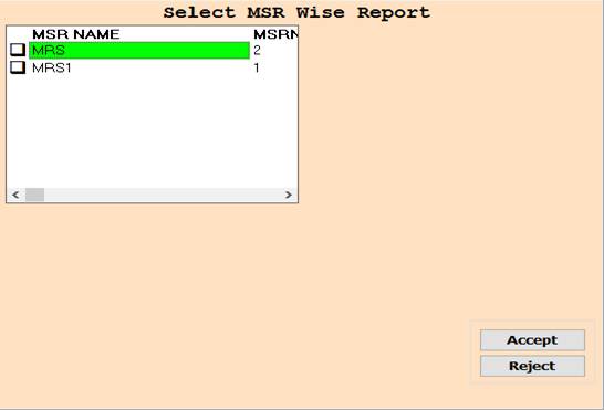 2. In this Window Select MSR Name According To Your Need for Show Report, Select Any One or Multiple