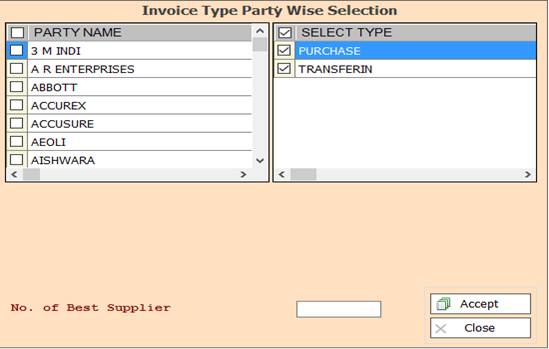 1. In this Window Select Invoice type And Party Name According To Your Need for Show Report, Select Any One or Multiple