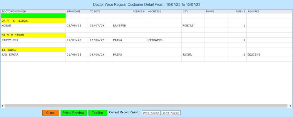 5. Close :- Click on the Close button this Report will be Closed.