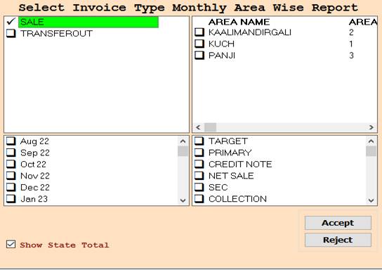 2. In this Window Select Invoice/Area/Month According To Your Need for Show Report, Select Any One or Multiple