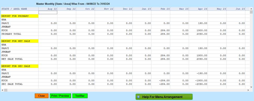 Sale-Tout/Area/Monthly /Master Report