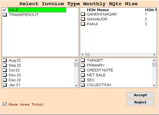 2. In this Window Select Invoice/HQtr/Month Name According To Your Need for Show Report, Select Any One or Multiple