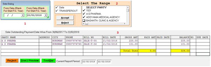 Definition: This report will show Payment Wise Outstanding sale report with Party Name, Inv No, Inv Date, Due date, Due Days, Paid Date, Paid amount, Balance amount and other details.