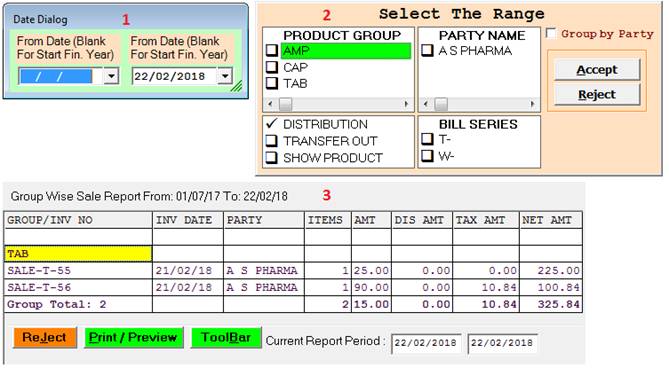 Definition: This report will show product Group wise sale report for selected party(s) with Product, Group, Inv No, Inv Date, Party Name and other detail.