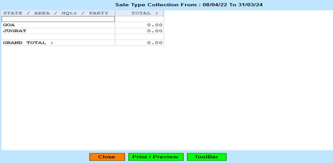Reports->Territory/Management Reports -> Territory Analysis->State Wise Report ->Sales Type Wise Collection.