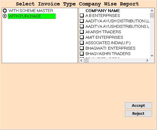 ❖ 5. WITH PURCHASE ->Please Select The Scheme Master Or Press On F3 All Select Company Name Wise Report Show