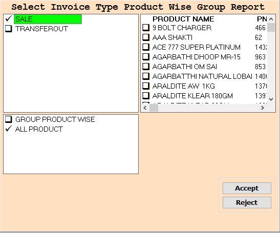 ❖ 12.GROUP PRODUCT WISE->Please Select The Group Product Wise Or Press On F3 All Select Product Name Wise Report Show