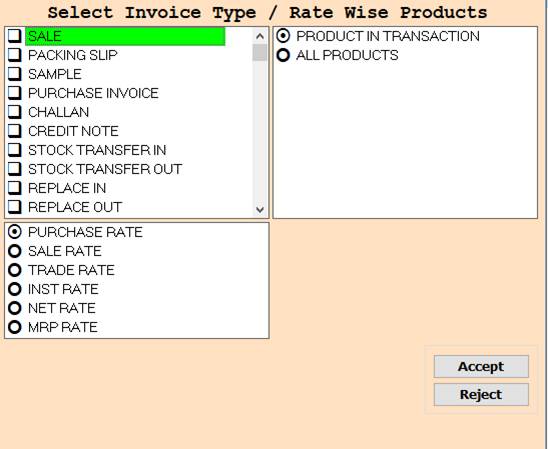 ❖ 6.PURCHASE RATE ->Please Select The Purchase Rate Or Product In Transaction Wise Report Show