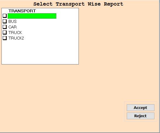 ❖ 2.TRANSPORT ->Please Select Anyone Transport Or Press On F3 All Select Transport Wise Report Show