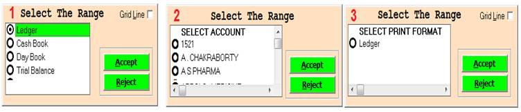 Definition: This will show Account report, based on the selection (Ledger, Account, Print Format)