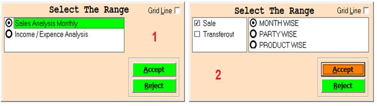 Definition: This will show Month wise, Party Wise, Product wise Graphical report, based on the selection
